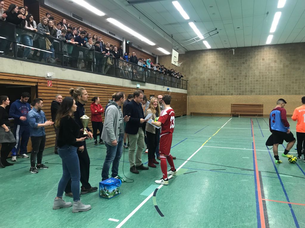 Acht Teams kämpften in diesem Jahr um den Cup bei unserem Traditionsturnier. Bereits zum 25. Mal wurde dies nun ausgetragen. Grund genug für die Organisatoren der ersten Stunde, mal wieder vorbeizuschauen – Siegfried Bokelmann und Thomas Weinknecht waren sich einig: „Das war mit eines der hochkarätigsten und fairsten Turniere der letzten 25 Jahre.“ Spaß am Zugucken hatten alle Beteiligten. Die Schiris des Bremer Fußballverbandes pfiffen die Spiele souverän. Nach aufregenden Vorrundenspielen standen sich schließlich die Oberstufenmannschaft des Waller Rings und unser Team der GSW im Finale gegenüber. Ein Spiel auf Augenhöhe, das 0:0 ausging und ins Elfmeterschießen ging. Spannender konnte das Finale nicht sein. Mit ein wenig mehr Glück gewann dies der Waller Ring. Bei der Siegerehrung erhielt die Siegermannschaft den großen Pokal, aber auch weitere Preise wurden vergeben, wie Werder-Eintrittskarten, Fußbälle etc. Außerdem wurde der fairste Spieler bedacht – Ole Bahr, 10.-Klässler der GSW, sowie die fairste Mannschaft – Rübekamp 2. Team.