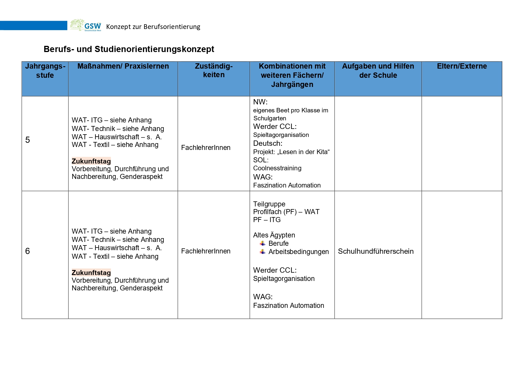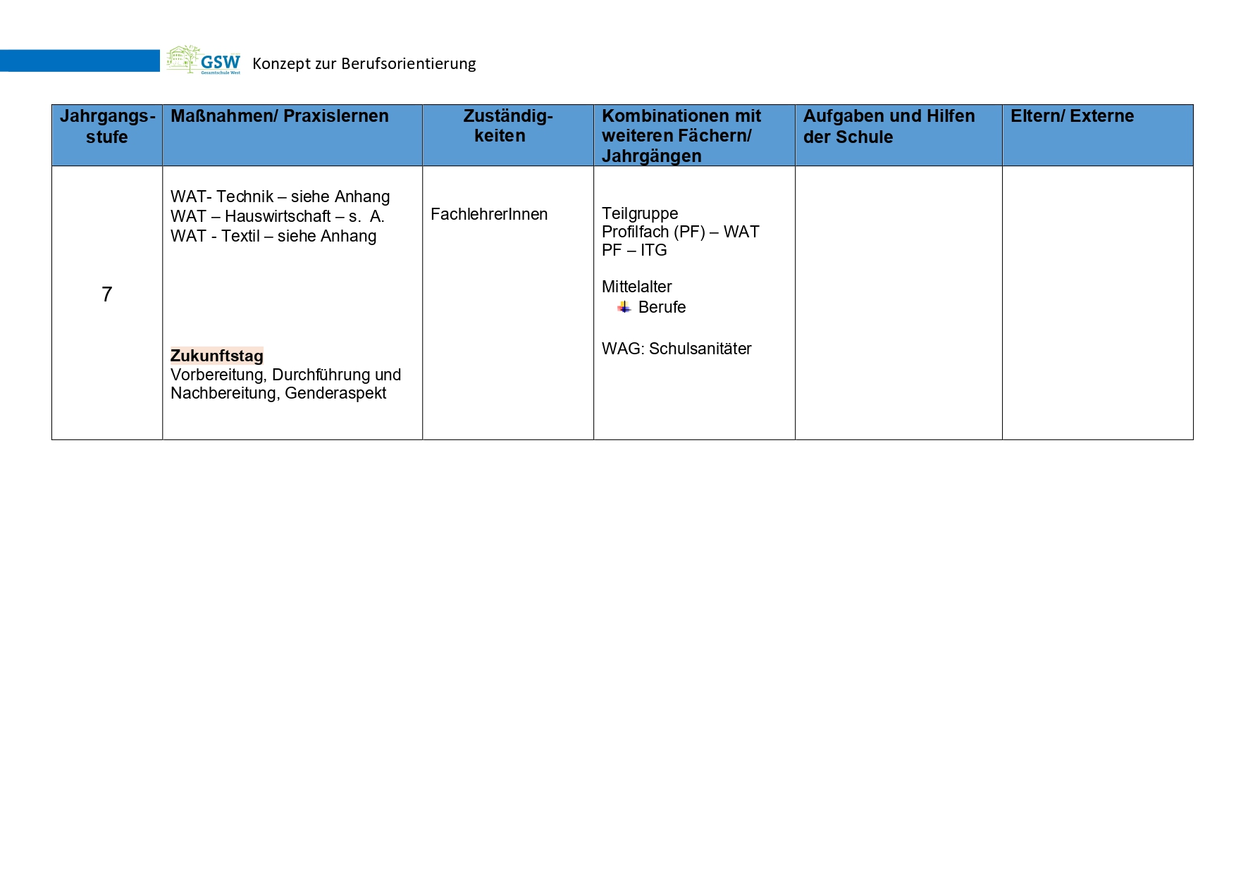 im WAT-Unterricht bis Klasse 7 bereitgestellt.