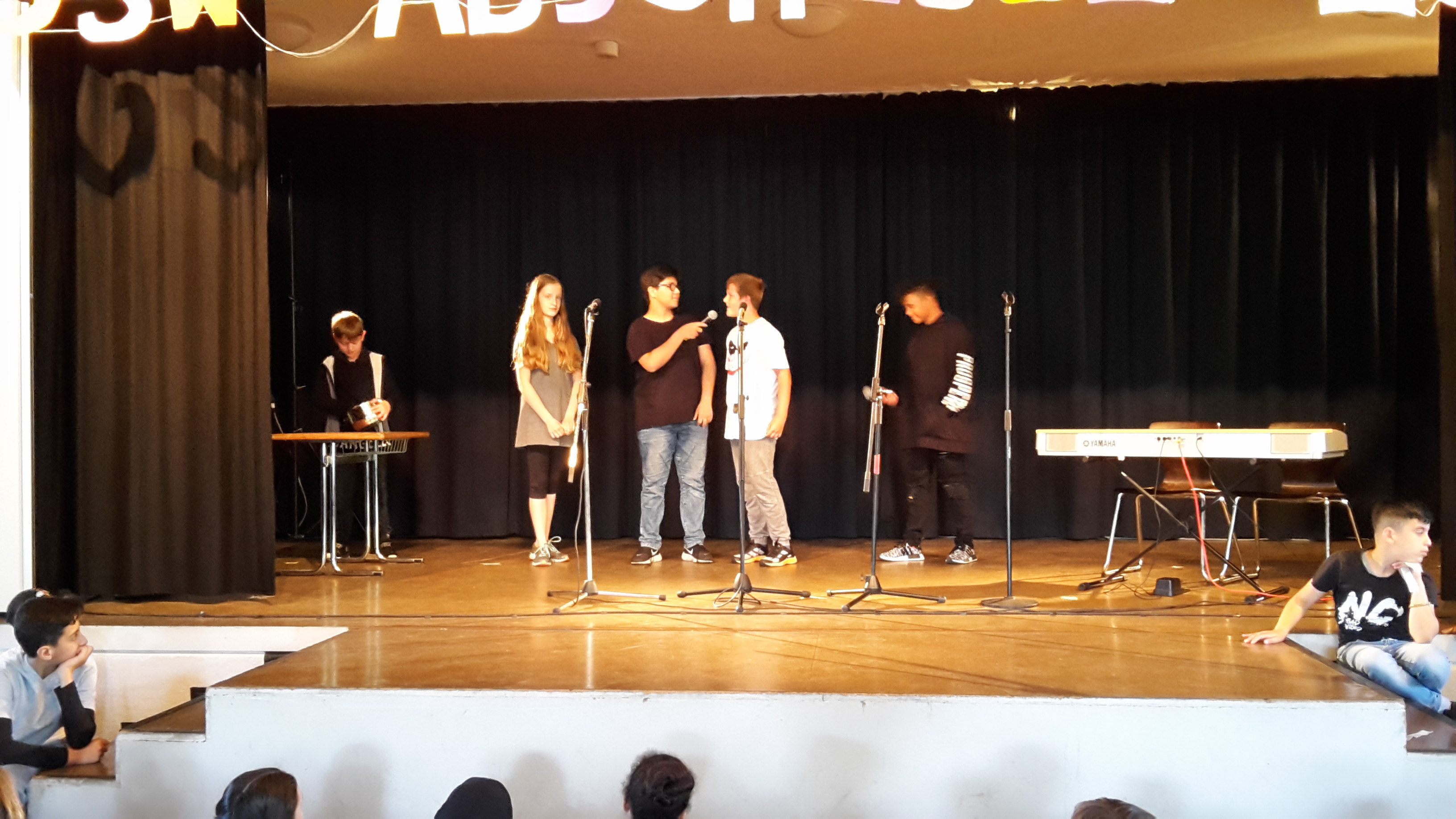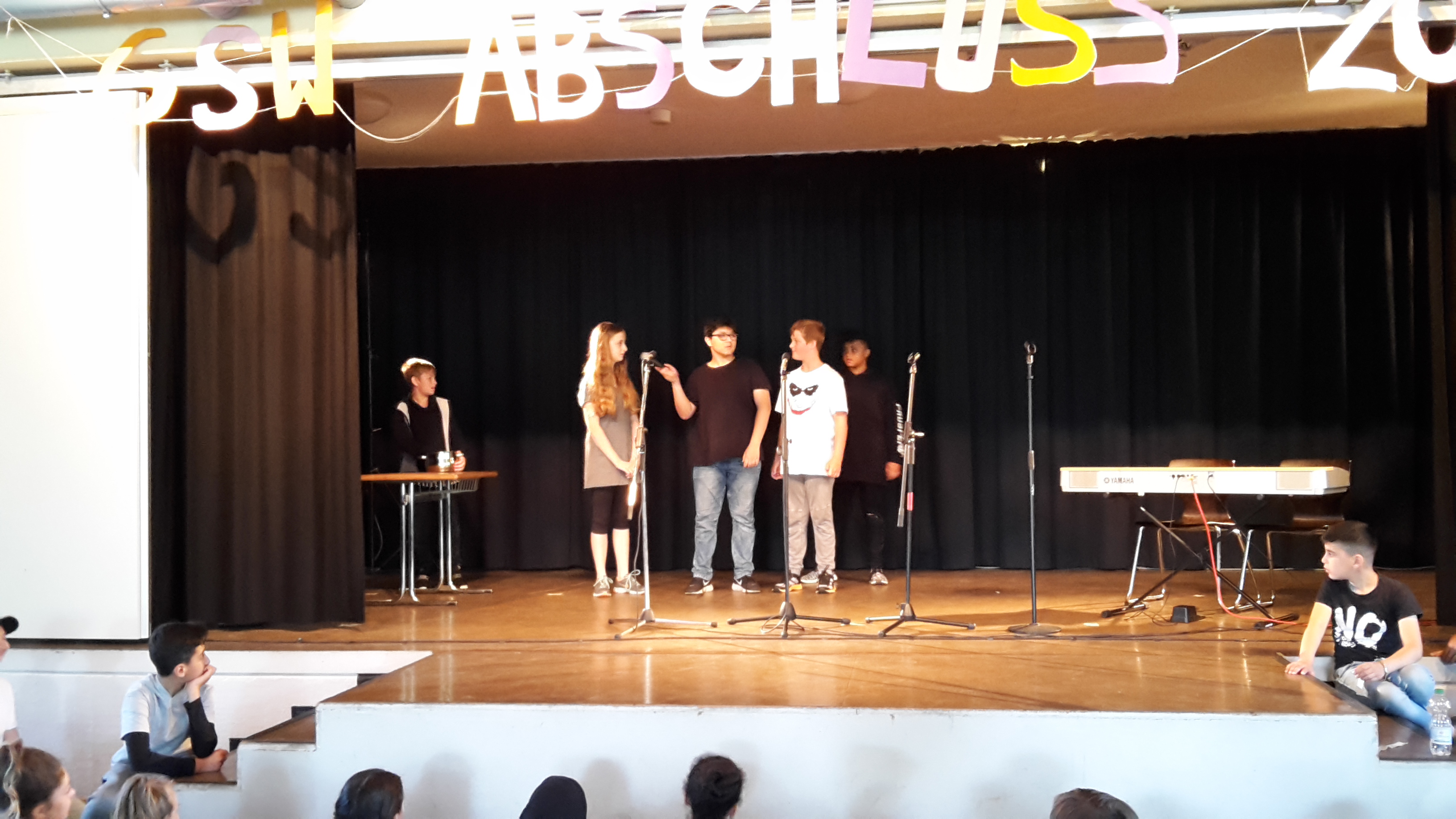 Viele tolle Beiträge der SchülerInnen machten die Mensashow wieder zu einem tollen Erlebnis. Erstmals gab es auch eine Filmdarbietung. Die Klasse 8C hat einen Film zum Thema GSW im Wandel der Zeit gedreht, welcher beim Publikum besonders gut ankam.