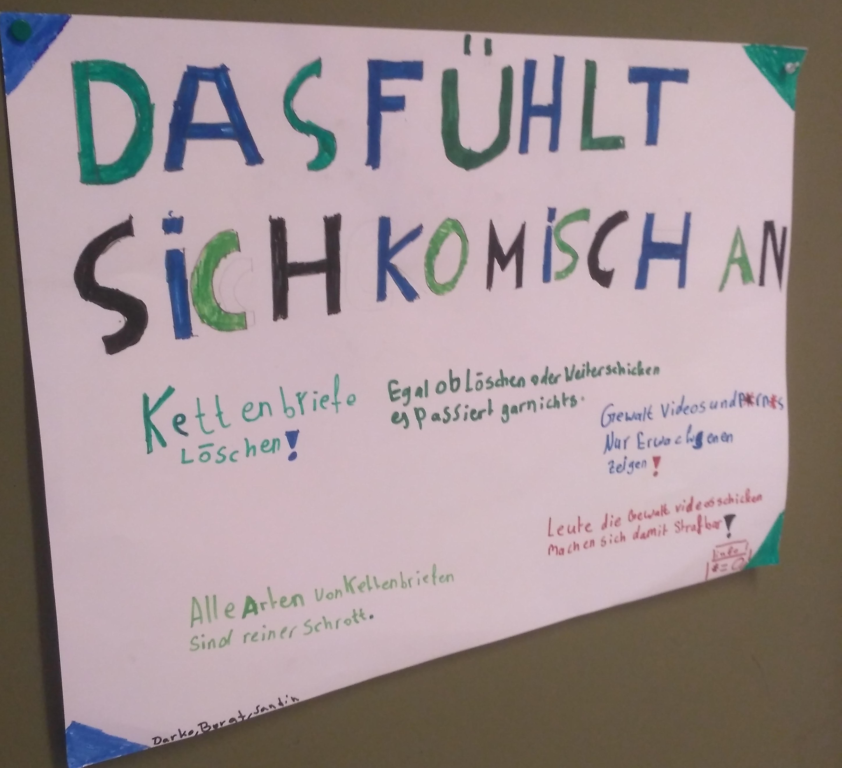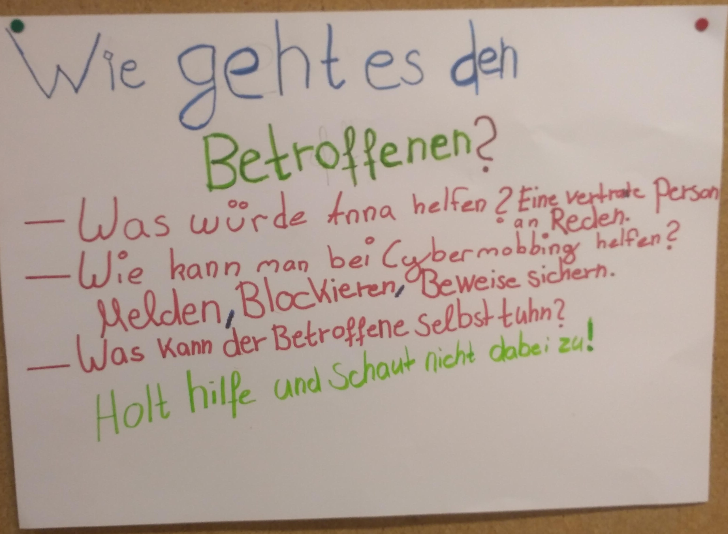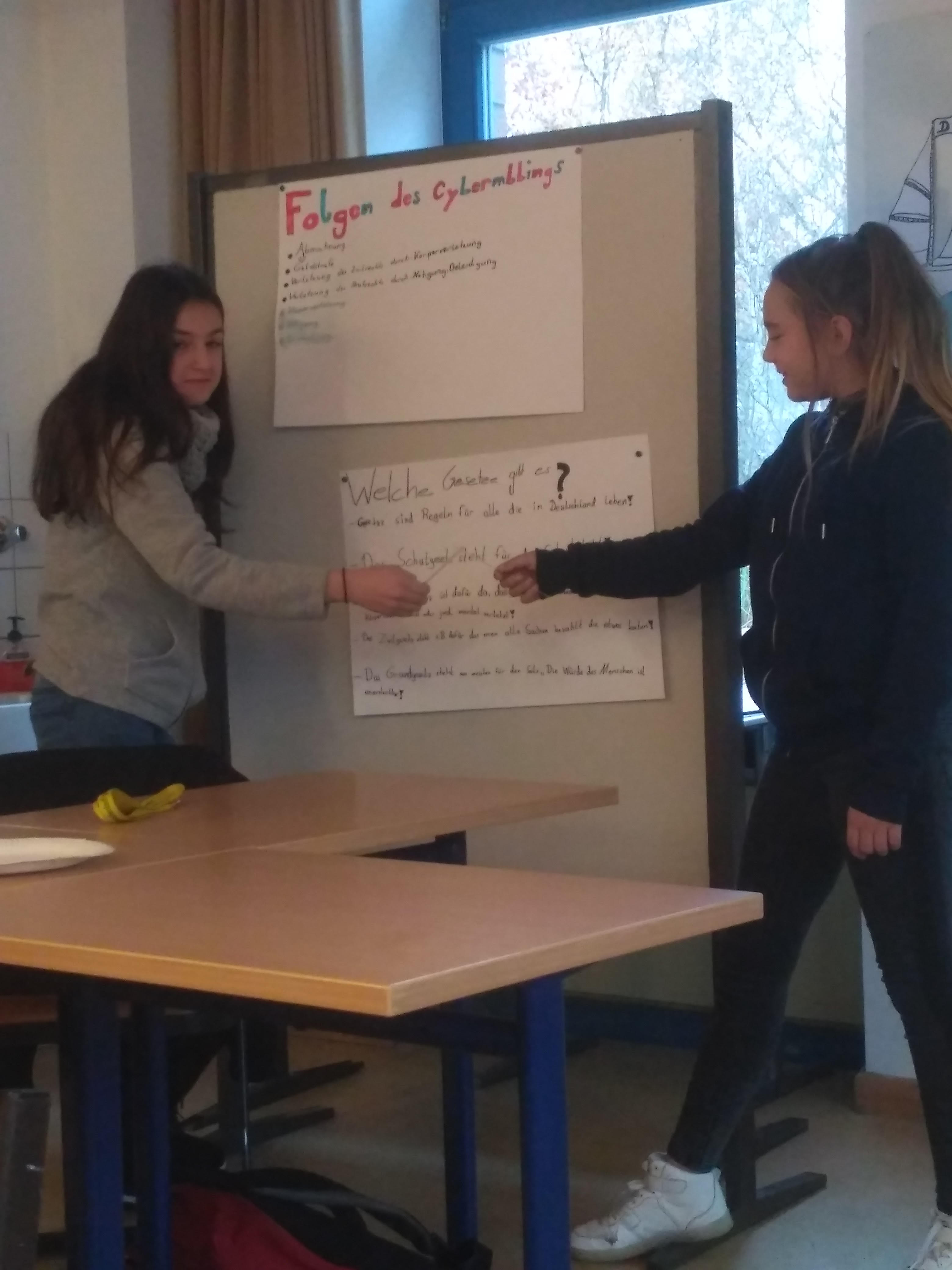 Vom 26.11. bis zum 30.11.19 hat der 6. Jahrgang eine Projektwoche mit dem Thema Mobbing und Cybermobbing unternommen. Dort haben sie den Umgang mit Mobbing, was man dagegen tun kann und wie man sich und anderen helfen kann, gelernt. Am Montag ist der Jahrgang mit einem Film über eine typische Mobbing-Situation eingestiegen in die Woche. Über die Woche hin haben die Schüler/innen der 6A auch ein kleines Theaterstück geübt, um es am Freitag für die Eltern aufführen zu können. Der Umgang miteinander und in Streitsituationen wurde besprochen. Die Schüler/innen fanden diese Projektwoche gut und sehr spannend, da sie was Neues dazu lernen konnten.