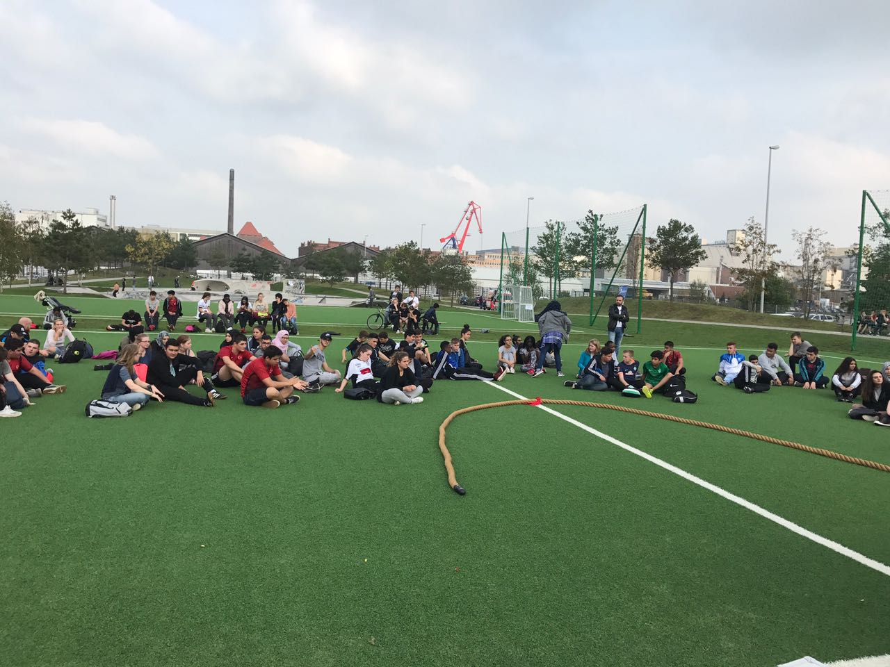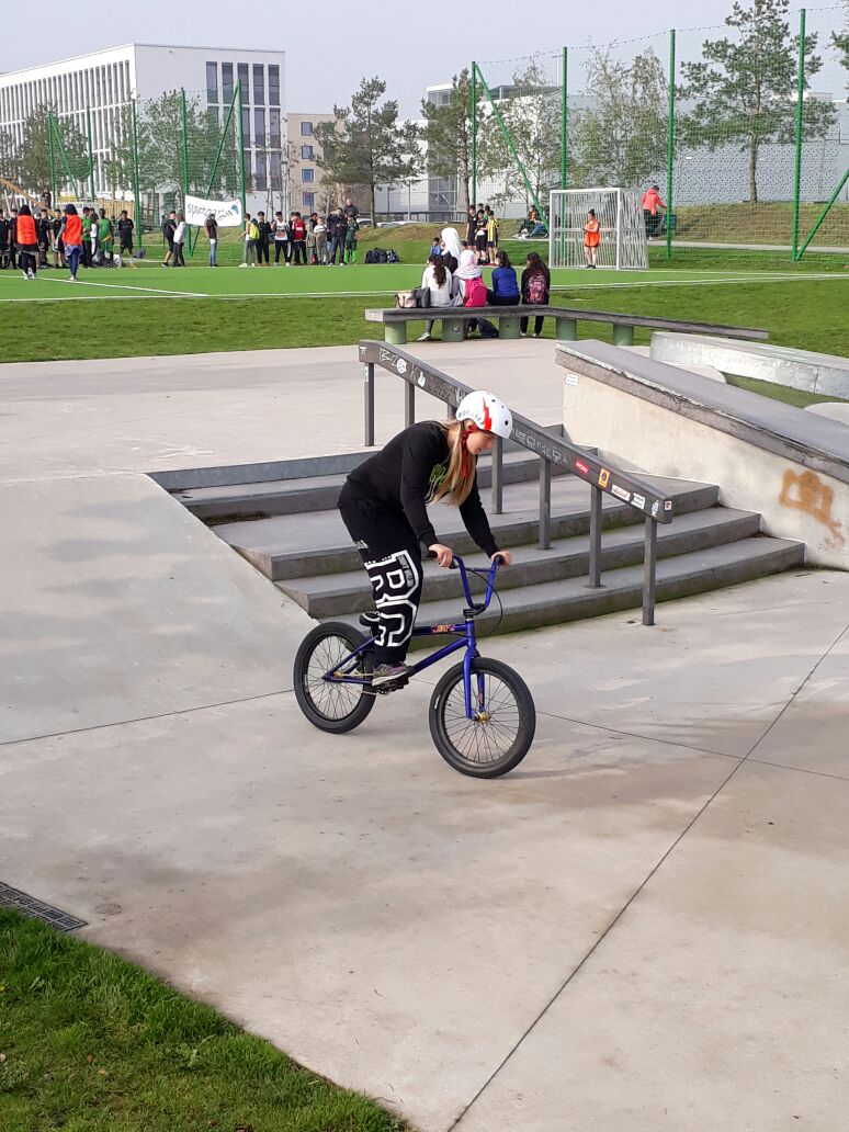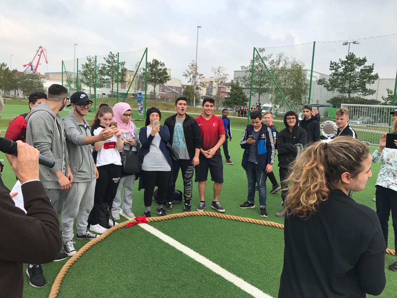 Drei Oberschulen im Bremer Westen haben gemeinsam die Ferien eingeläutet und am letzten Schultag noch an einem Sportfest teilgenommen. Unter der Überschrift „Überseespiele – Walle bewegt alle!“ lockten die Organisatoren des Sportgartens über 500 SchülerInnen der Helgolander, des Waller Rings und der Gesamtschule West auf das neue Gelände des Sportgartens in der Überseestadt. Von 9.30 Uhr bis 14.30 Uhr konnten die Acht- bis Zehntklässler an vielen interessanten Workshops teilnehmen. Dabei war die Trendsportart Parcours heiß begehrt, aber auch Skateboarden, BMX fahren, Speedminton, Hip Hop tanzen etc. kamen gut an. Alle Workshops wurden von engagierten Trainern angeboten, die den Kids viele Tipps gaben.